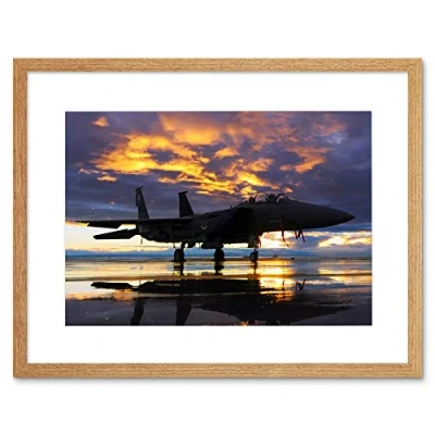 Wee Blue Coo Photo Military Aircraft Fighter Bomber Jet Sunset Framed Wall Art Print