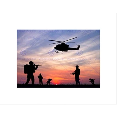 Wee Blue Coo PHOTO MOCK UP SILHOUETTE SUNSET CHOPPER SQUAD BLACK FRAMED ART PRINT B12X13320