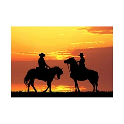 Wee Blue Coo Photo Mock Up Silhouette Sunset Cowboy Prairie Wall Art Print