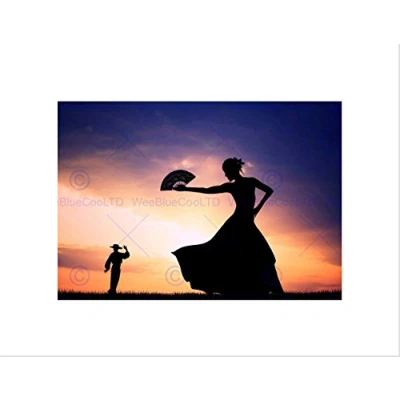 Wee Blue Coo PHOTO MOCK UP SILHOUETTE SUNSET FLAMENCO DANCING FRAMED ART PRINT B12X13324