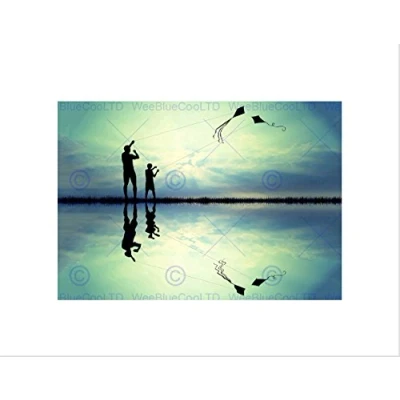 Wee Blue Coo PHOTO MOCK UP SILHOUETTE SUNSET KITE FLYING BLACK FRAMED ART PRINT B12X13326