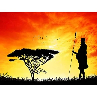 Wee Blue Coo Photo Mock Up Silhouette Sunset Masai Warrior Art Print Poster Wall Decor 12X16 Inch