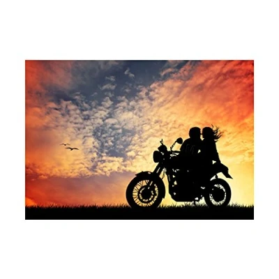 Wee Blue Coo Photo Mock Up Silhouette Sunset Motorcycle Romance Wall Art Print