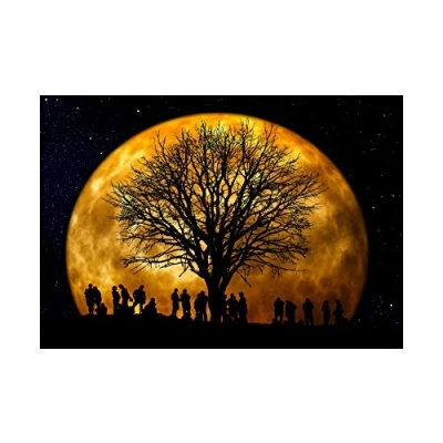 Wee Blue Coo Photo Moon People Silhouette Tree Wall Art Print