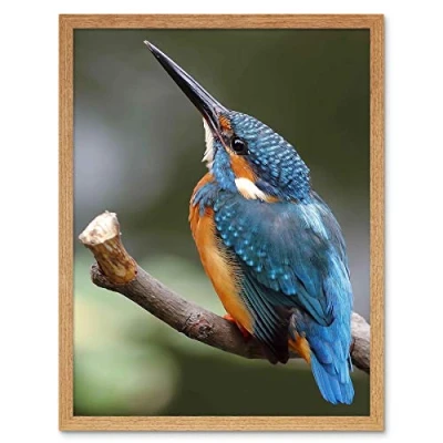 Wee Blue Coo Photo Nature Animal Bird Kingfisher Colourful Beak Feather Art Print Framed Poster Wall Decor 12X16 Inch