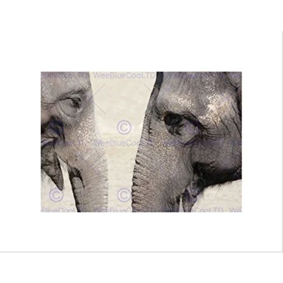 Wee Blue Coo PHOTO NATURE ANIMAL ELEPHANTS FACE PAIR TRUNK EYES WRINKLE FRAMED PRINT B12X8196