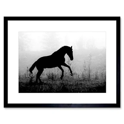 Wee Blue Coo PHOTO NATURE ANIMAL HORSE SILHOUETTE BLACK WHITE MISTY COOL ART PRINT B12X8433
