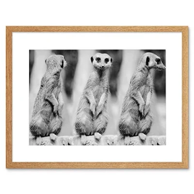 Wee Blue Coo Photo Nature Meerkat Black White Cute Framed Wall Art Print
