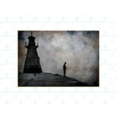 Wee Blue Coo Photo Painting Coastal Scene Lighthouse Angler Wall Art Print