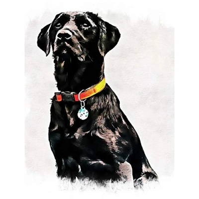 Wee Blue Coo Photo Painting Pet Black Labrador Retriever Dog Cute Art Print Poster Wall Decor 12X16 Inch