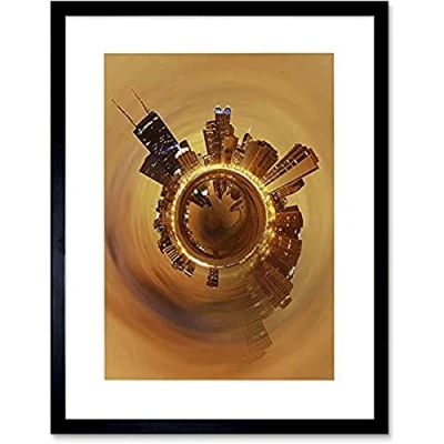 Wee Blue Coo Photo Painting Small World Skyline Chicago USA Dusk Wall Art Print
