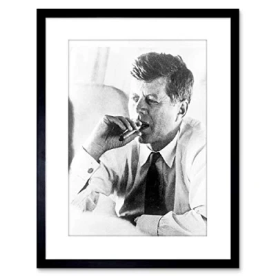Wee Blue Coo Photo President John Kennedy Smoke Cigar JFK Framed Wall Art Print