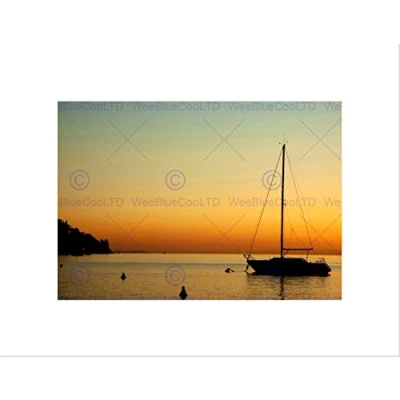 Wee Blue Coo PHOTO SEACAPE SUNSET SILHOUETTE YACHT BOAT CALM SEA FRAMED ART PRINT B12X8580