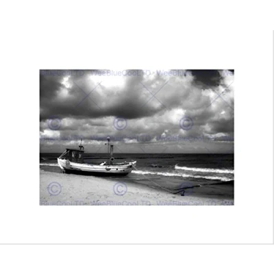 Wee Blue Coo Photo Seascape Beach Fishing Boat Waves Stormy Sky Monotone Art Wall Print