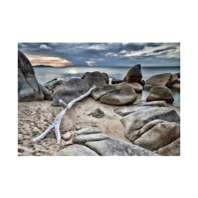 Wee Blue Coo Photo Seascape Beach Rocks Ocean Sky Driftwood Twig Sand Wall Art Print