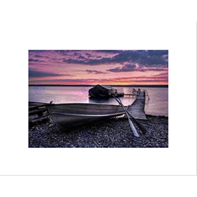 Wee Blue Coo PHOTO SEASCAPE LAKE CAYUGA BOAT JETTY PIER PINK SKY CLOUDS FRAMED PRINT B12X8537