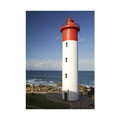 Wee Blue Coo Photo Seascape Lighthouse Ocean Red White Rocks Sea Sky Wall Art Print