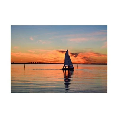 Wee Blue Coo Photo Seascape Oland Bridge Sweden Boat Sunset Clouds Wall Art Print