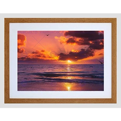 Wee Blue Coo Photo Seascape Sunset Ocean Sun Clouds Sunbeam Gull Framed Wall Art Print