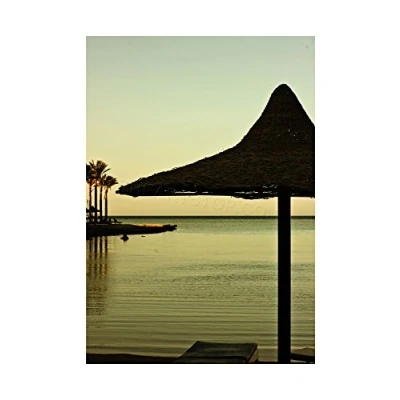Wee Blue Coo Photo Seascape Tropical Beach Hut Palm Tree Ocean Scenic Wall Art Print