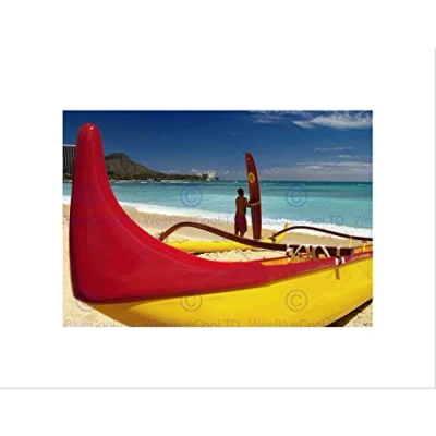 Wee Blue Coo Photo Seascape Waikiki Beach Hawaii Sea Ocean Sand Canoe Wall Art Print