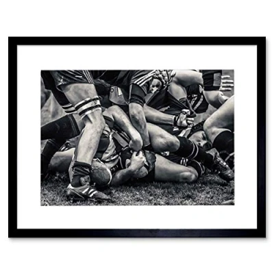 Wee Blue Coo Photo Sport Rugby Football Scrum Players Ball Picture Framed Wall Art Print