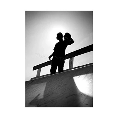 Wee Blue Coo Photo Sport Skateboarding Skater Silhouette Black Wall Art Print