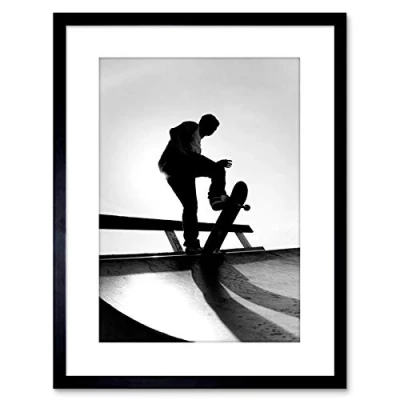 Wee Blue Coo Photo Sport Skateboarding Skater Silhouette Framed Wall Art Print