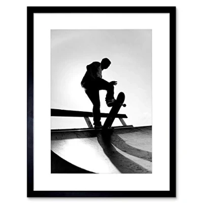 Wee Blue Coo Photo Sport Skateboarding Skater Silhouette Framed Wall Art Print