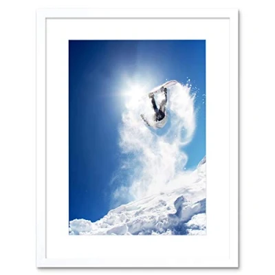 Wee Blue Coo Photo Sport Snowboarding Jump Air Sun Snow Framed Wall Art Print