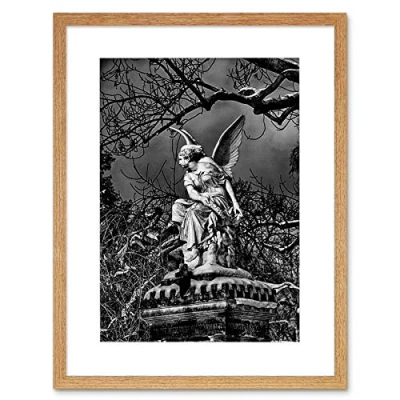 Wee Blue Coo Photo Statue Sculpture Angel Wings Creepy Black White Framed Wall Art Print