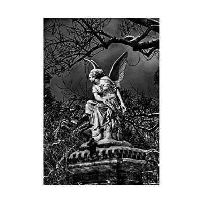 Wee Blue Coo Photo Statue Sculpture Angel Wings Creepy Black White Wall Art Print