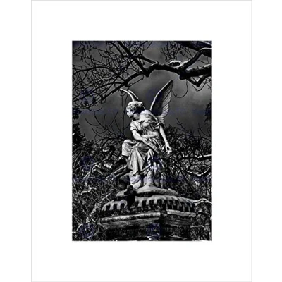 Wee Blue Coo Photo Statue Sculpture Angel Wings Creepy Black White Wall Art Print