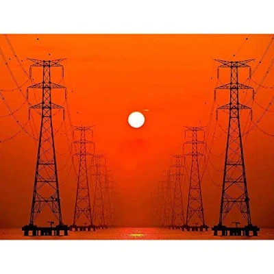 Wee Blue Coo Photo Sunset Electric Pylons Seascape Art Print Poster Wall Decor 12X16 Inch