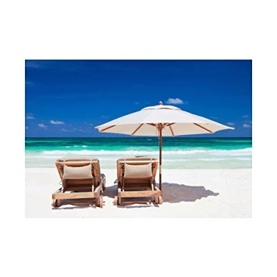 Wee Blue Coo Photo Vacation Sand Beach Sea Tropical Mexico Parasol Wall Art Print