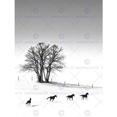 Wee Blue Coo Photo Winter Landscape Bare Trees Running Horses Wall Art Print