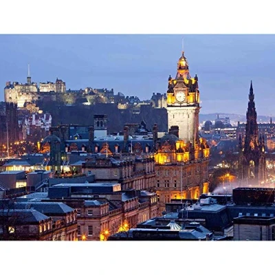 Wee Blue Coo Photograph Cityscape Edinburgh Castle Scott Monument Art Print Poster Wall Decor 12X16 Inch