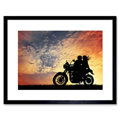 Wee Blue Coo PHOTOGRAPH COMPOSITION SUNSET MOTORBIKE LOVERS SILHOUETTE FRAMED PRINT B12X13649