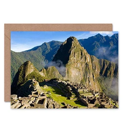 Wee Blue Coo PHOTOGRAPH LANDMARK MACHU PICCHU RUINS BLANK GREETINGS BIRTHDAY CARD