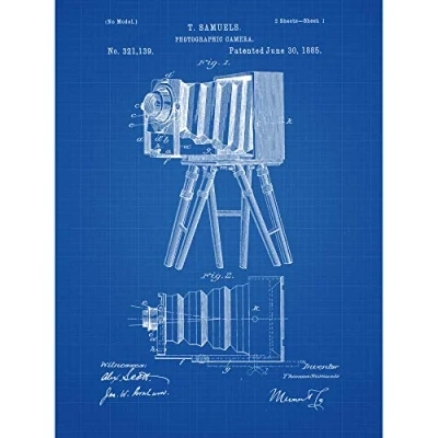 Wee Blue Coo Photographic Camera Blueprint Unframed Wall Art Print Poster Home Decor Premium