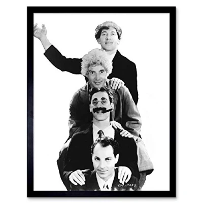 Wee Blue Coo Photography Black White Harpo Groucho Marx Brothers Art Print Framed Poster Wall Decor 12X16 Inch