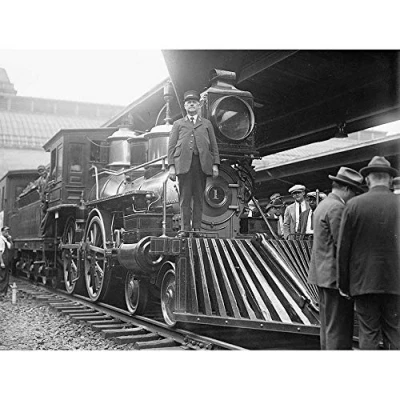 Wee Blue Coo Photography Black White Train Conductor Steam Engine Art Print Poster Wall Decor 12X16 Inch