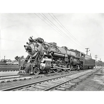 Wee Blue Coo Photography Black White Train Rail Steam Engine Locomotive Canvas Print