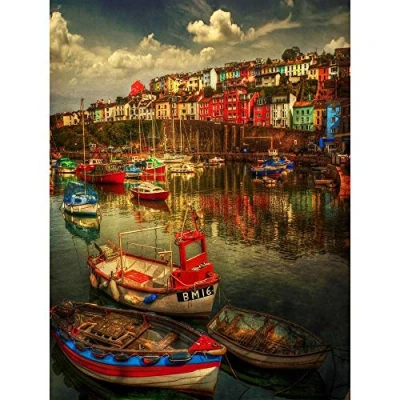 Wee Blue Coo Photography Cityscape Brixham Devon England Boats Harbour Art Print Poster Wall Decor 12X16 Inch