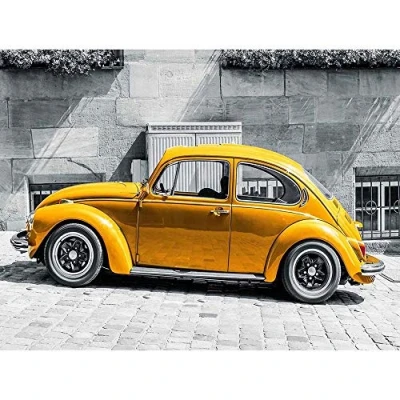 Wee Blue Coo Photography Composition Yellow Vintage Car Automobile Art Print Poster Wall Decor 12X16 Inch