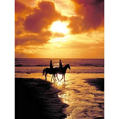 Wee Blue Coo Photography Seascape Beach Horses Sunset Ocean Sand Waves Art Print Poster Wall Decor 12X16 Inch