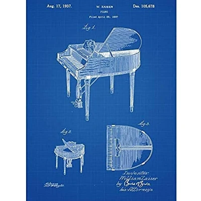 Wee Blue Coo Piano Blueprint Art Print Canvas Premium Wall Decor Poster Mural