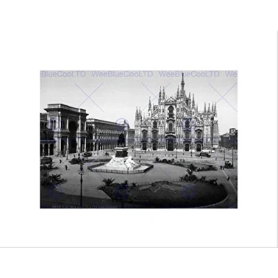 Wee Blue Coo PIAZZA OF THE CATHEDRAL MILAN ITALY OLD BW BLACK FRAMED ART PRINT B12X560