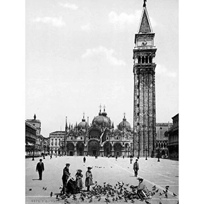 Wee Blue Coo Piazza San Marco Campanile Venice Italy 1895 Old BW Art Print Poster Wall Decor 12X16 Inch