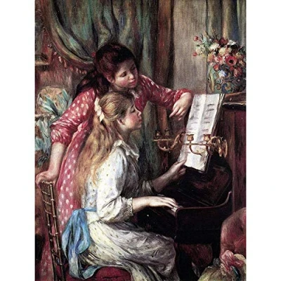 Wee Blue Coo Pierre Auguste Renoir Young Girls At Piano [2] Old Painting Art Print Poster Wall Decor 12X16 Inch